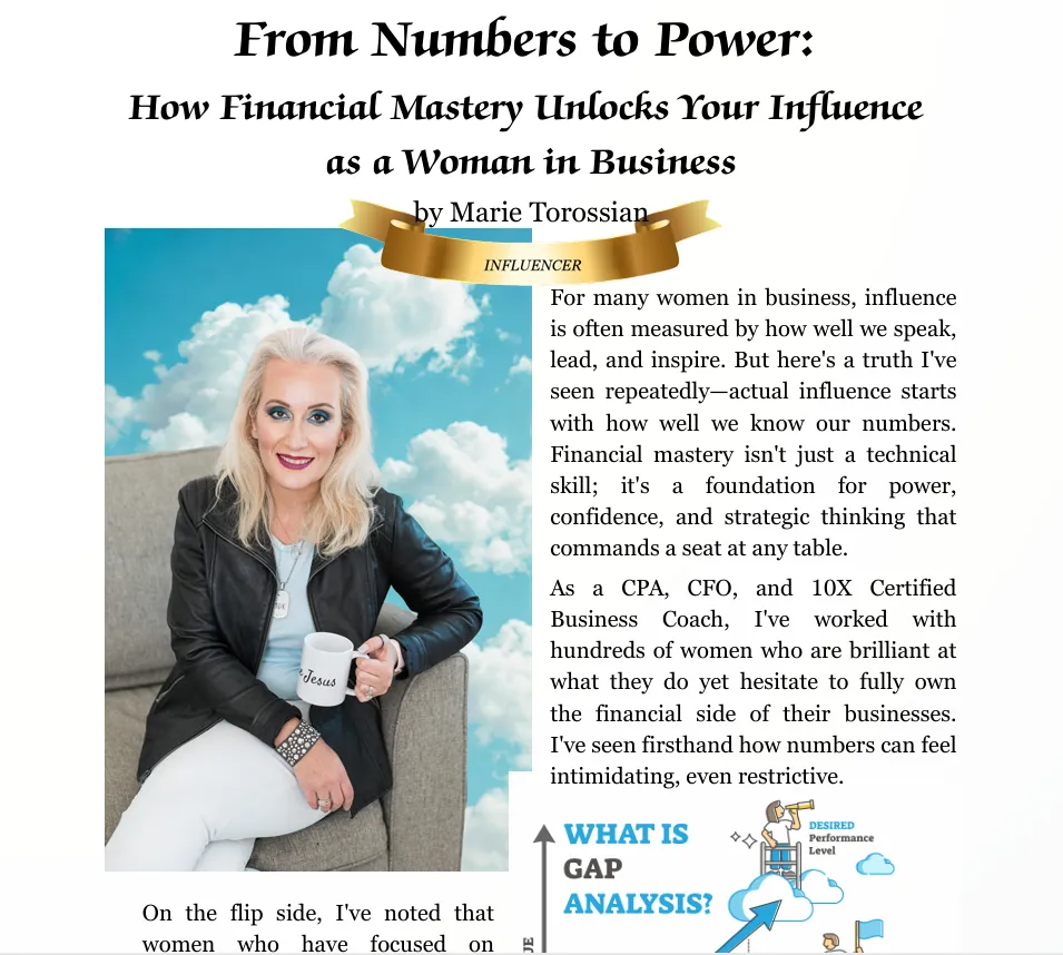 Tune into this podcast episode, a business-centric podcast where we dissect the intricacies of entrepreneurial growth, financial management, and business value enhancement. Our guest today, Marie Torossian - the founder of The Profit Lab and Marie Torossian CPA, a 10X Certified Elite Coach, and author - is here to empower and enlighten you with her deep-rooted expertise acquired over three decades.